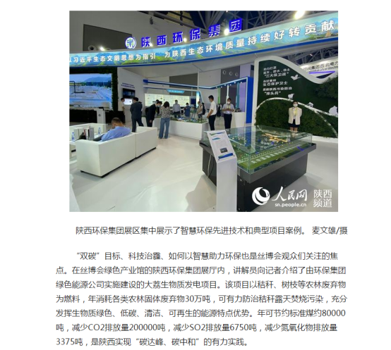 “雙碳”目標、科技治霾、如何以智慧助力環保也是絲博會觀眾們關注的焦點。在絲博會綠色產業館的陜西環保集團展廳內,講解員向記者介紹了由環保集團綠色能源公司實施建設的大荔生物質發電項目。該項目以秸稈、樹枝等農林廢棄物為燃料,年消耗各類農林固體廢棄物30萬噸,可有力防治秸稈露天焚燒污染,充分發揮生物質綠色、低碳、清潔、可再生的能源特點優勢。年可節約標準煤約80000噸,減少CO2排放量200000噸,減少SO2排放量6750噸,減少氮氧化物排放量3375噸,是陜西實現“碳達峰、碳中和”的有力實踐。
