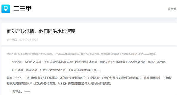 7月中旬,進入雨季,陜西寶雞市太白縣王家堎鎮受本地降雨與紅巖河上游來水影響,轄區內和平村南溝等地水位持續上漲,防汛形勢嚴峻。