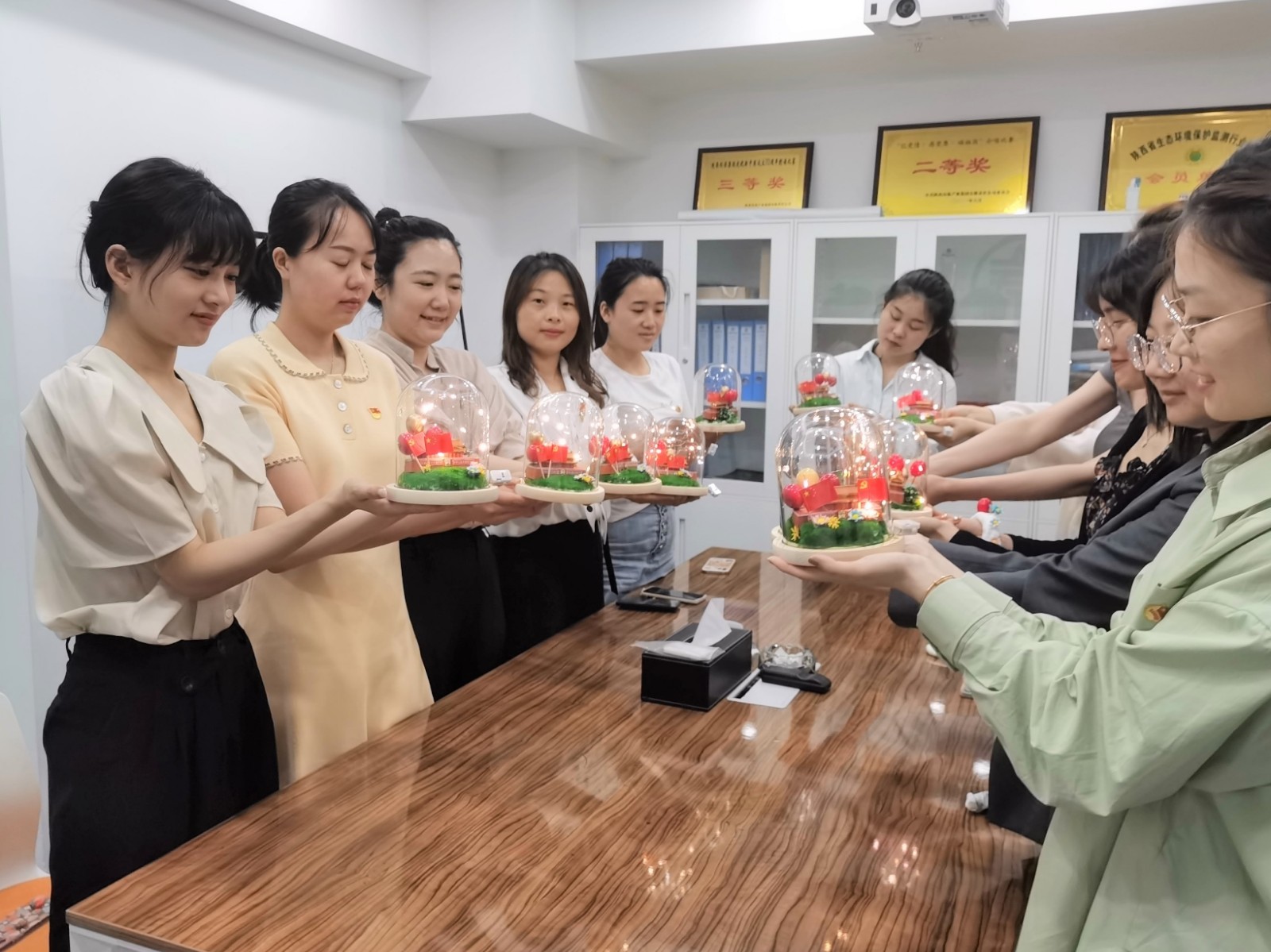 6月29日至30日,投資公司黨支部組織部分職工制作了“慶祝建黨周年”主題板報。引導公司全體職工深刻認識歷史和人民選擇中國共產黨的歷史必然性,自覺將個人進步和祖國發展緊密結合起來,向革命先驅、優秀黨員學習。公司黨支部和工會組織部分黨員、團員以及女職工代表,使用環保材料制作了黨建“DIY”作品。經過老師的認真講解和輔導,一個個創意獨特、充滿想象力帶有紅旗、黨旗、天安門等裝飾的作品紛紛出爐,讓大家的內心充滿溫暖。通過手工作品這種特有的表現形式,弘揚時代主旋律,激發職工愛國主義情懷,以實際行動向建黨百年獻禮。(馬藝僑)