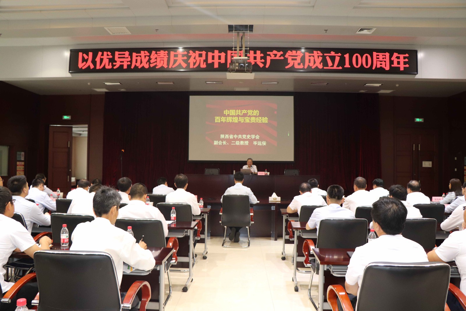 慶祝活動上,全體黨員和干部聚精會神地聆聽了由陜西省黨史學習教育宣講團成員、陜西省紀念中國共產黨成立100周年主題展專家組成員畢遠佞教授,講授的題為《中國共產黨的百年輝煌與寶貴經驗》的黨課,一幕幕黨的奮斗歷程,鼓舞人心。一件件可歌可泣的事跡,催人奮進。為公司黨員和干部注入了豐厚營養。為把汲取的豐厚營養,及時化為前行的力量,三秦環保股份公司黨總支書記講授了題為《堅定信心 乘勢而上 奮力譜寫三秦公司發展新篇章》的黨課,以“傳承紅色基因、汲取奮進力量,把握當前形勢、搶抓發展機遇,深化企業改革、激發發展活力,咬定目標任務、抓好工作落實”等為主要內容,動員黨員和干部率先垂范、奮勇前進,全力推動企業發展上水平、上臺階。